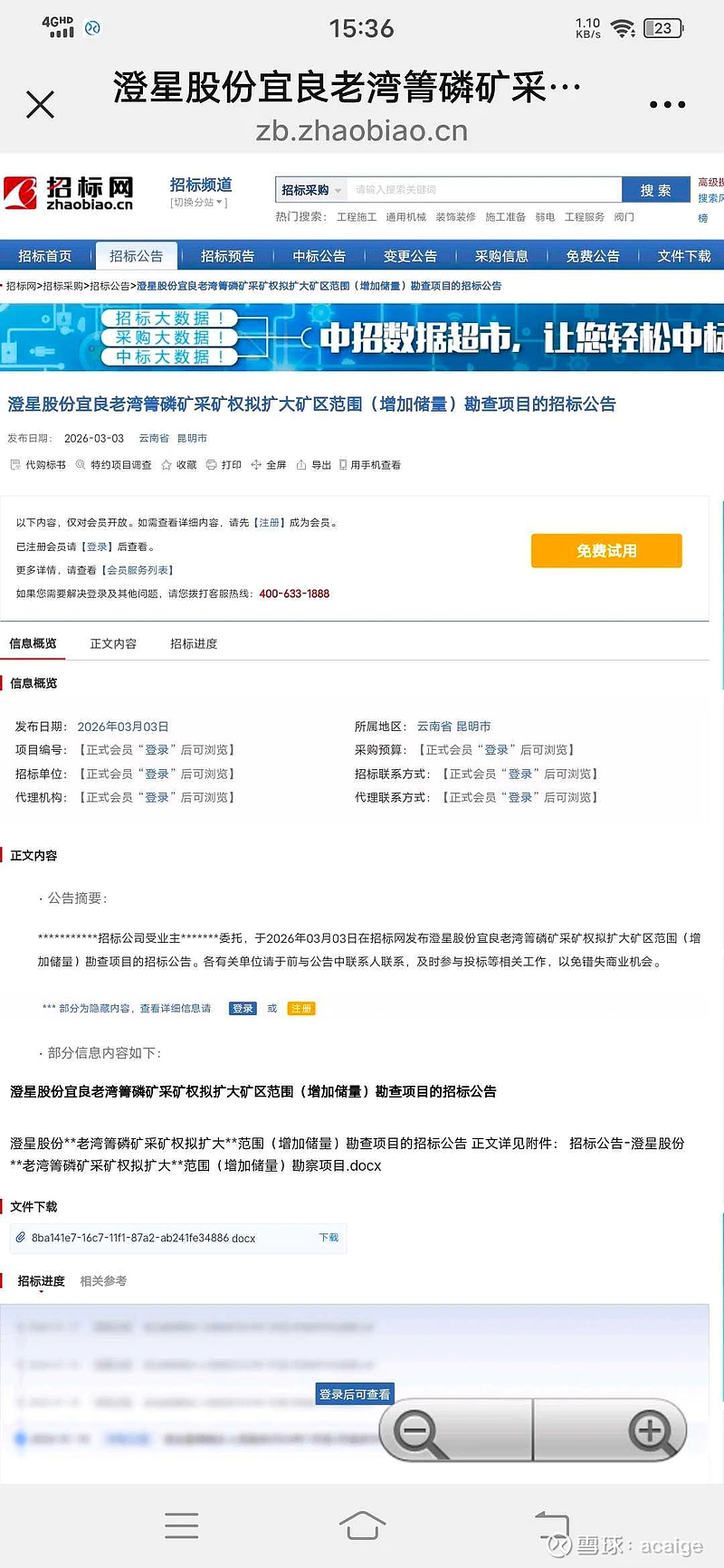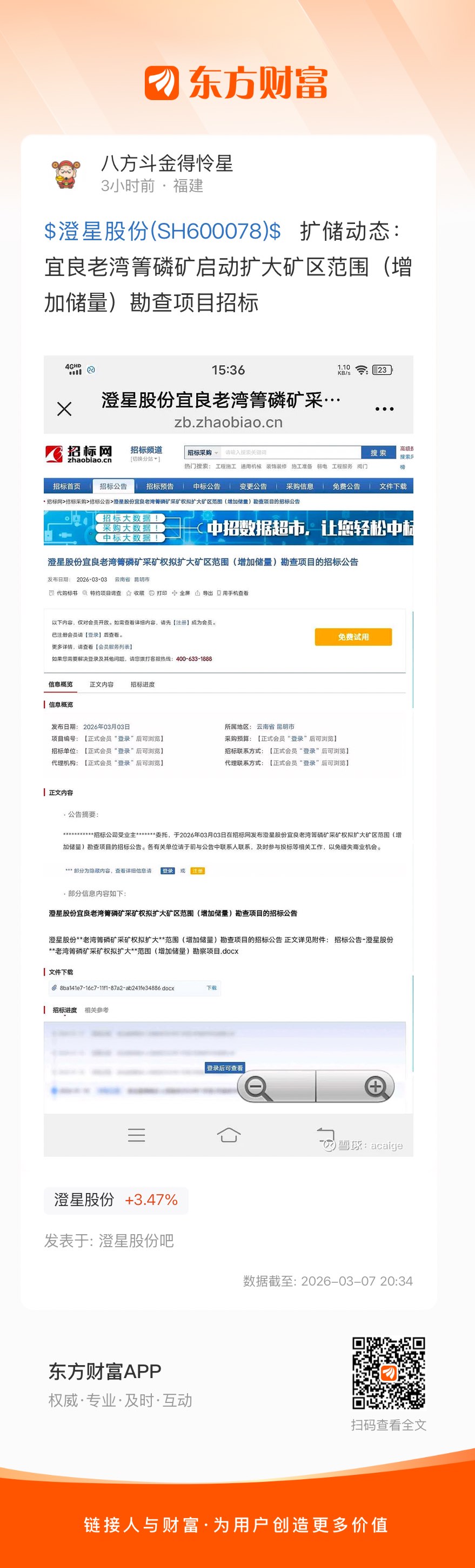 $澄星股份(SH600078)$  扩储动态:宜良老湾箐磷矿启动扩大矿区范围(增加储量)勘查项目招标