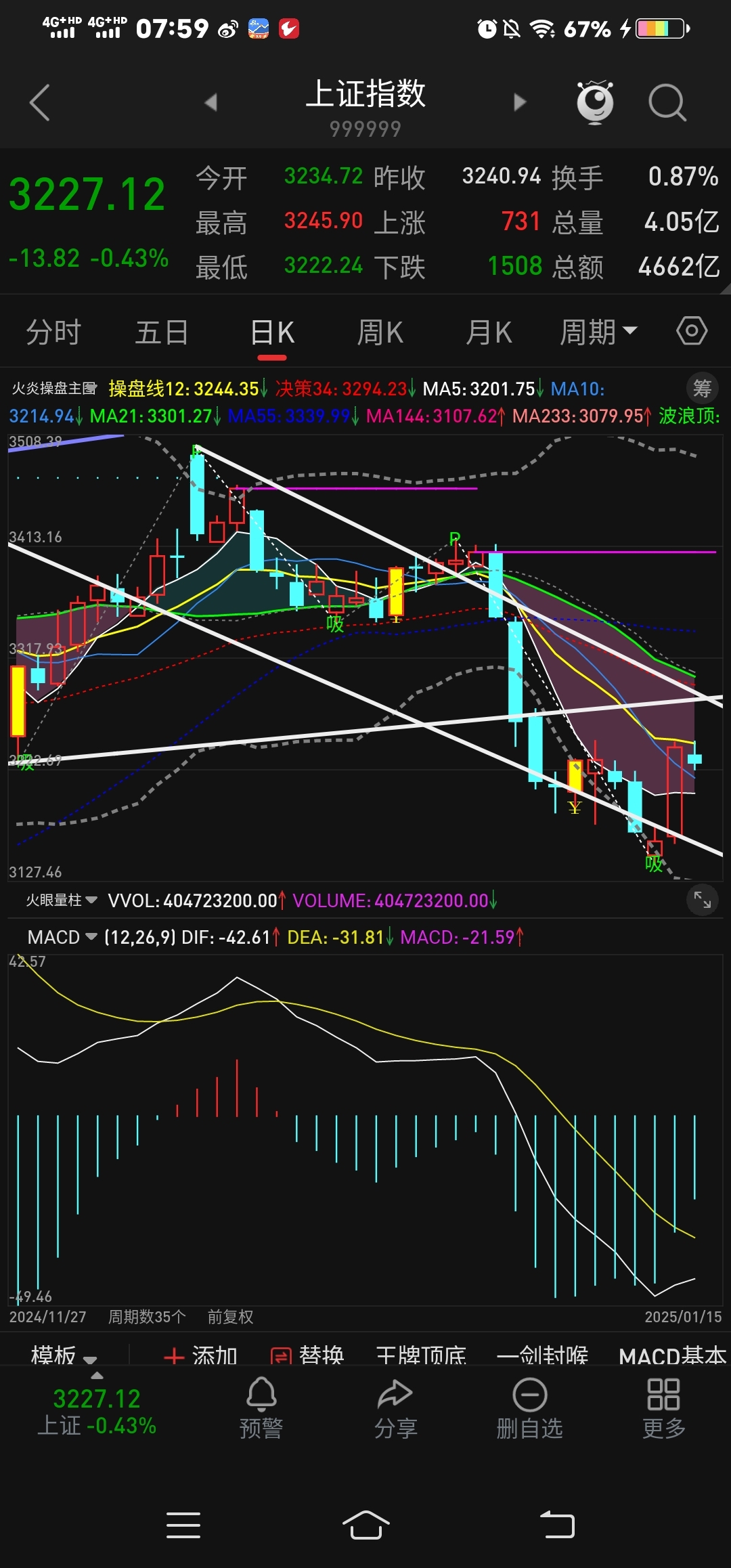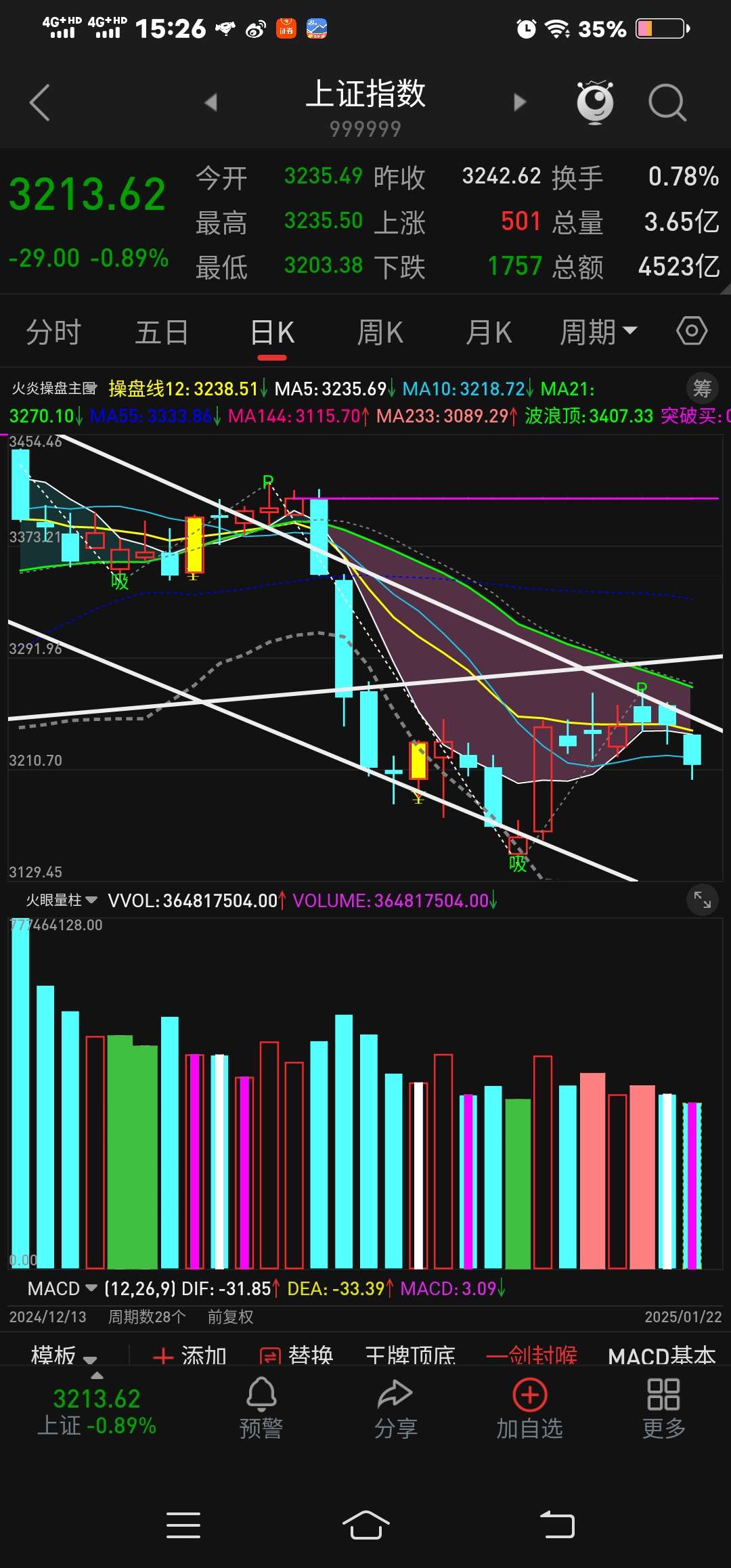 3245点,突破站稳两天,到时候再等分钟级别的顶背离共振了,
