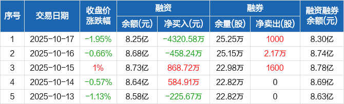 人福医药:融资净偿还4320.58万元,融资余额8.25亿元(10-17)