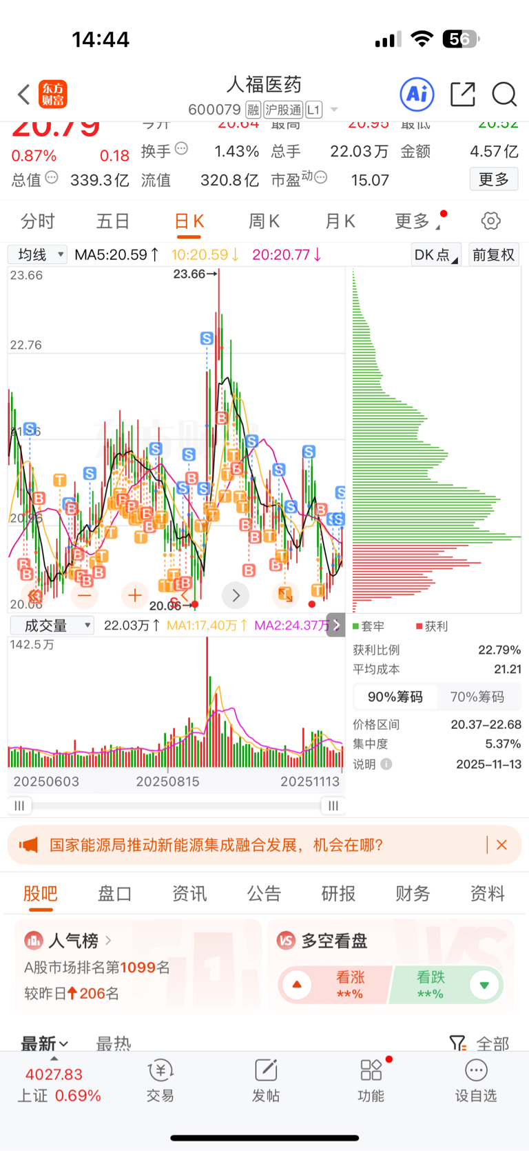 $人福医药(SH600079)$ 抱歉了,我不走它不涨!