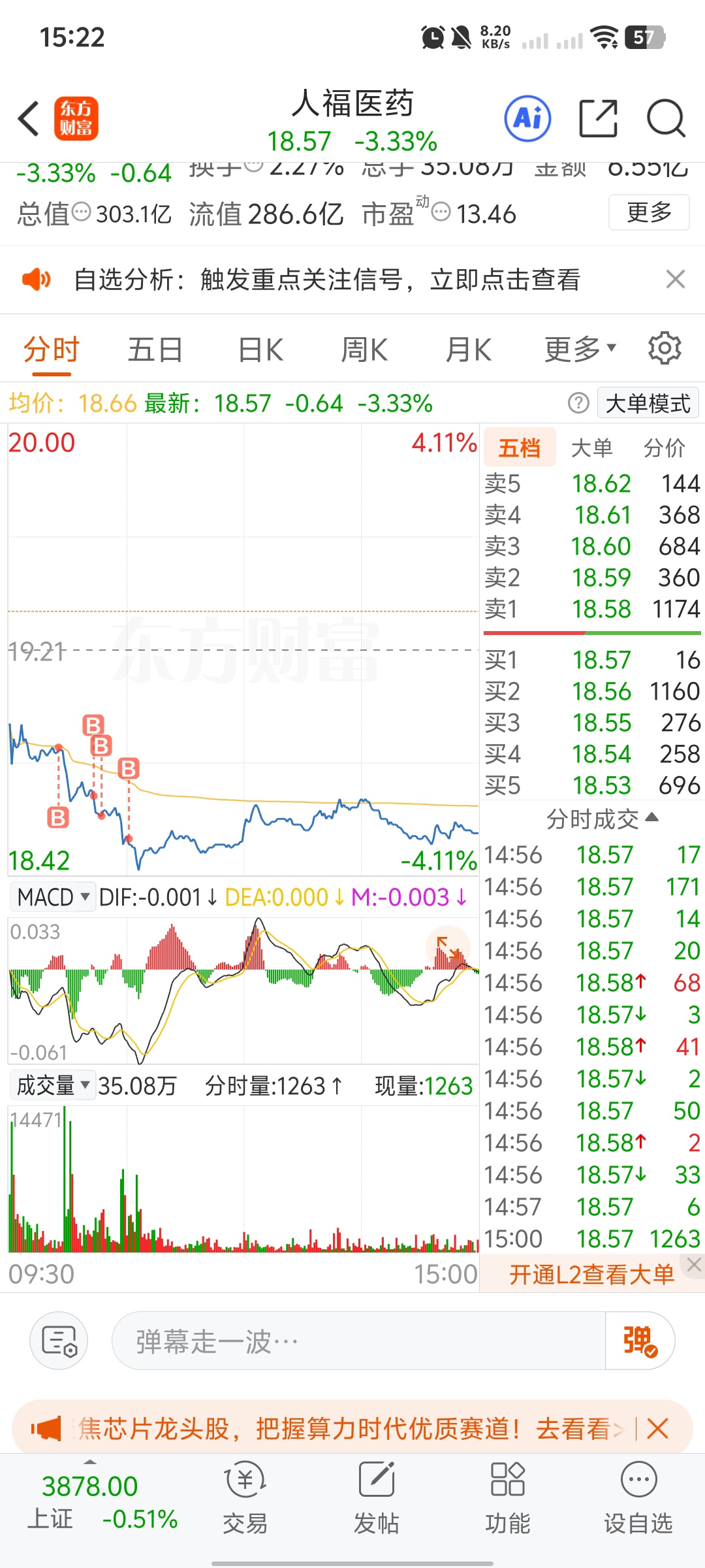 $人福医药(SH600079)$ 跟着归头哥,猛加仓,主力量化来了也得跪