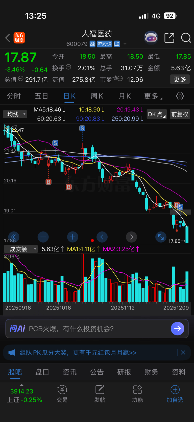 $人福医药(SH600079)$ 发个图不说话,公司不错,股票一言难尽。