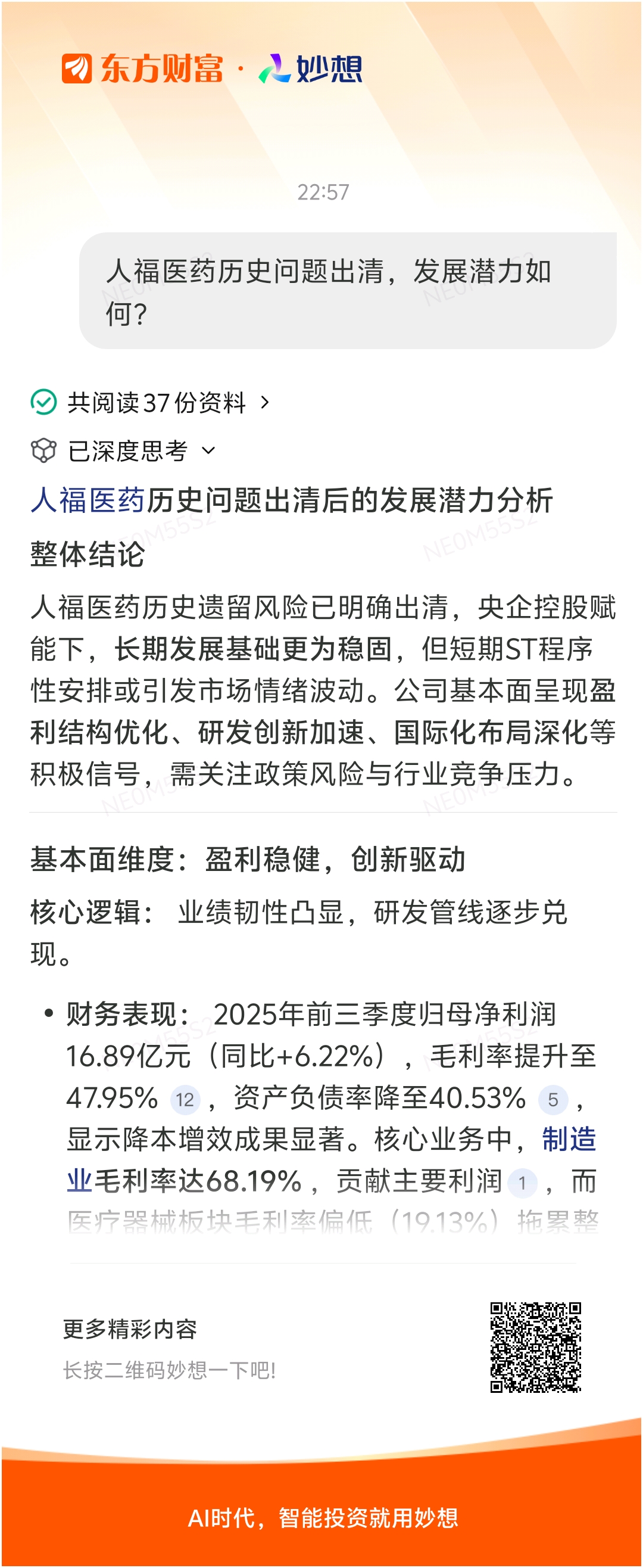 #@妙想,你怎么看?# 妙想一下:人福医药历史问题出清,发展潜力如何?