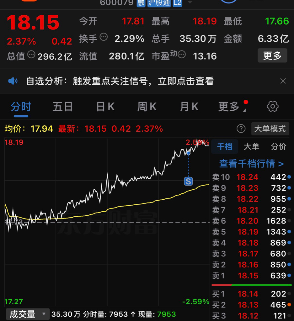 $人福医药(SH600079)$ 算是运气好吧,但总觉得st反而会涨