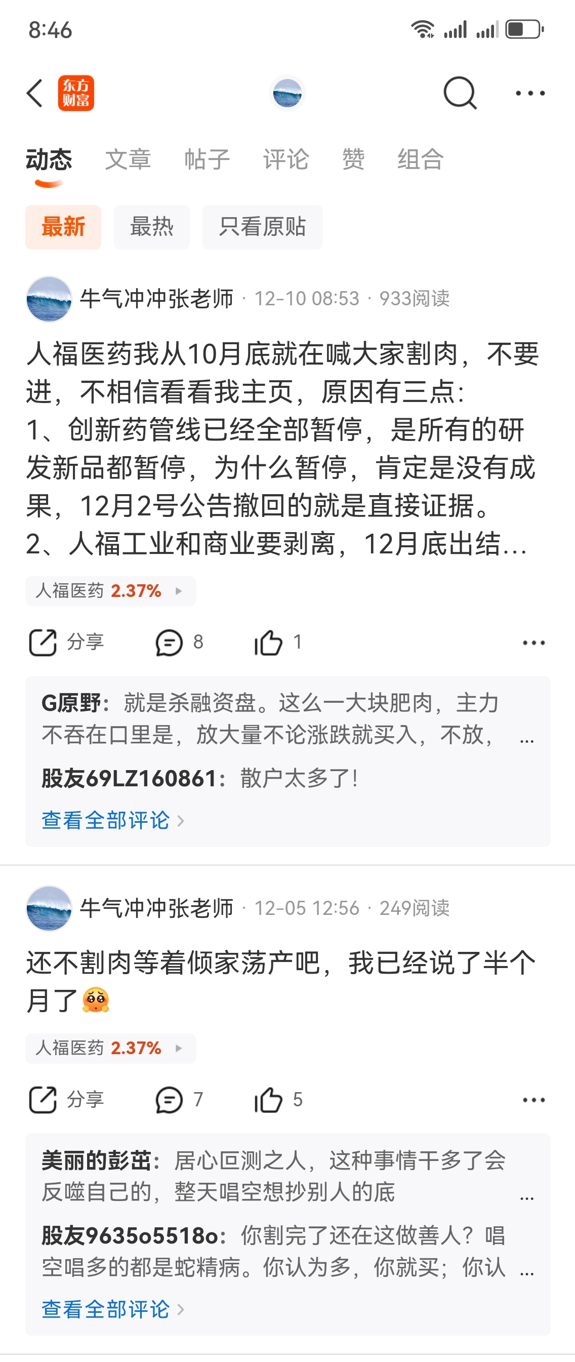 $人福医药(SH600079)$ 这个股吧里面的老朋友就知道我,我从11月中旬就在劝大家不要进,割肉,不然倾家荡产,那时候大家一直说我居心妥测,我列出三点因素:创新管线,商业工业剥离,国有资产要抄底优质要用手段,拿不就毁掉的风格,现在回看呢?