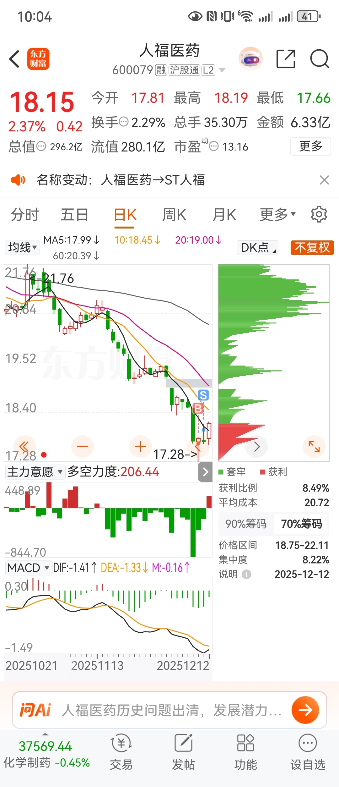 $人福医药(SH600079)$ 这就是冥冥之中? 哈哈哈哈 感谢st前吃了四个点