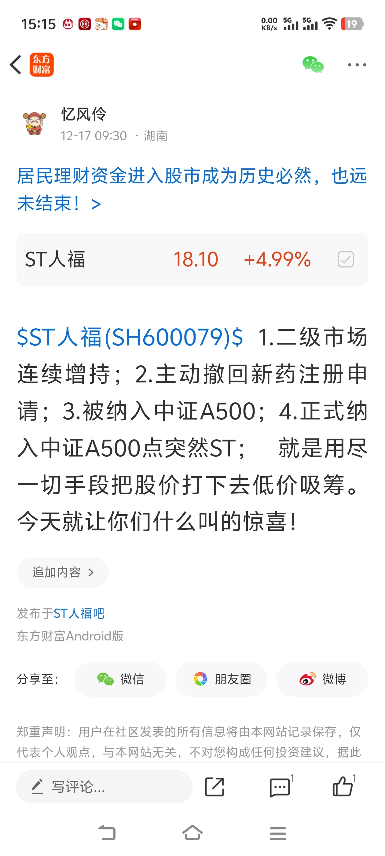 $ST人福(SH600079)$ 说的是肺腑之言,没人信,也没办法!