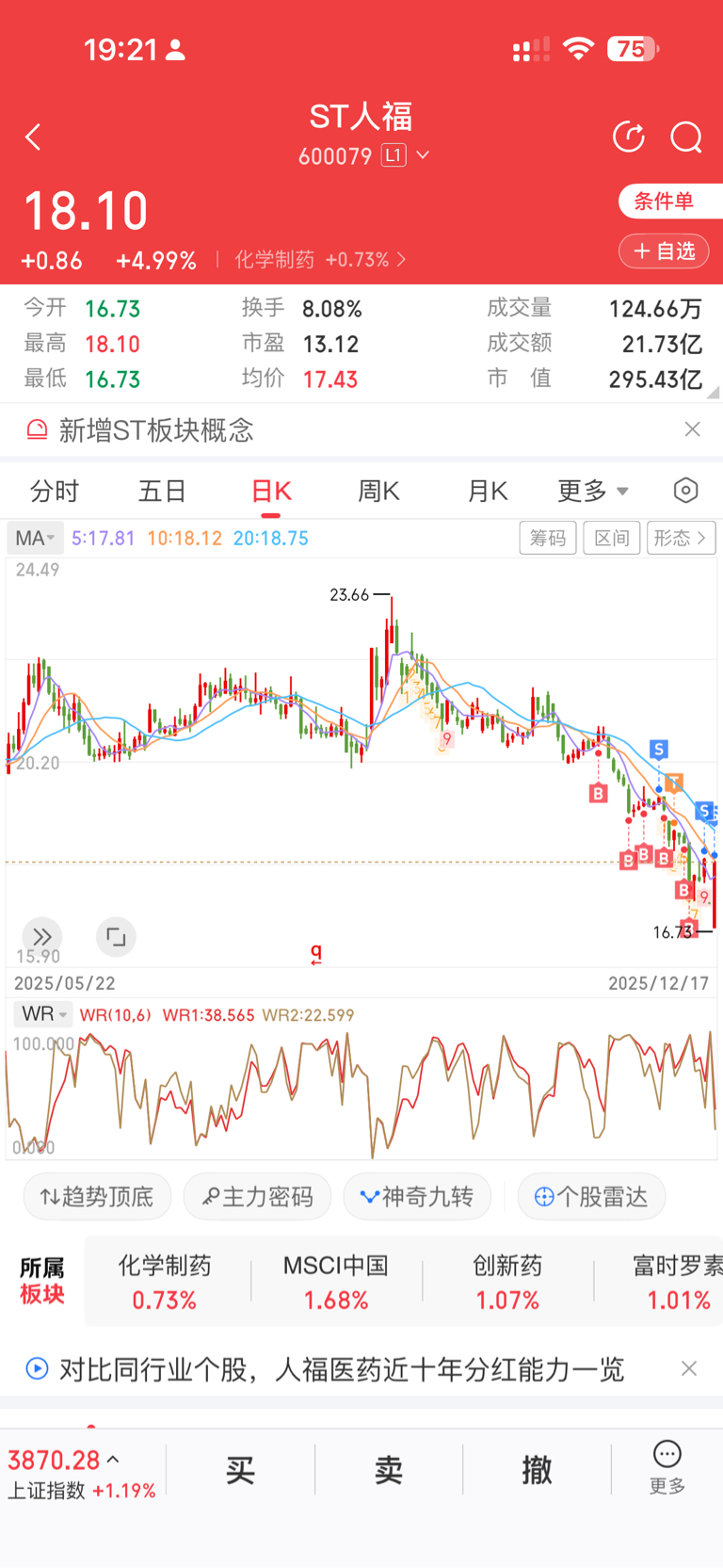 $ST人福(SH600079)$ 如果一直不卖,我回本了