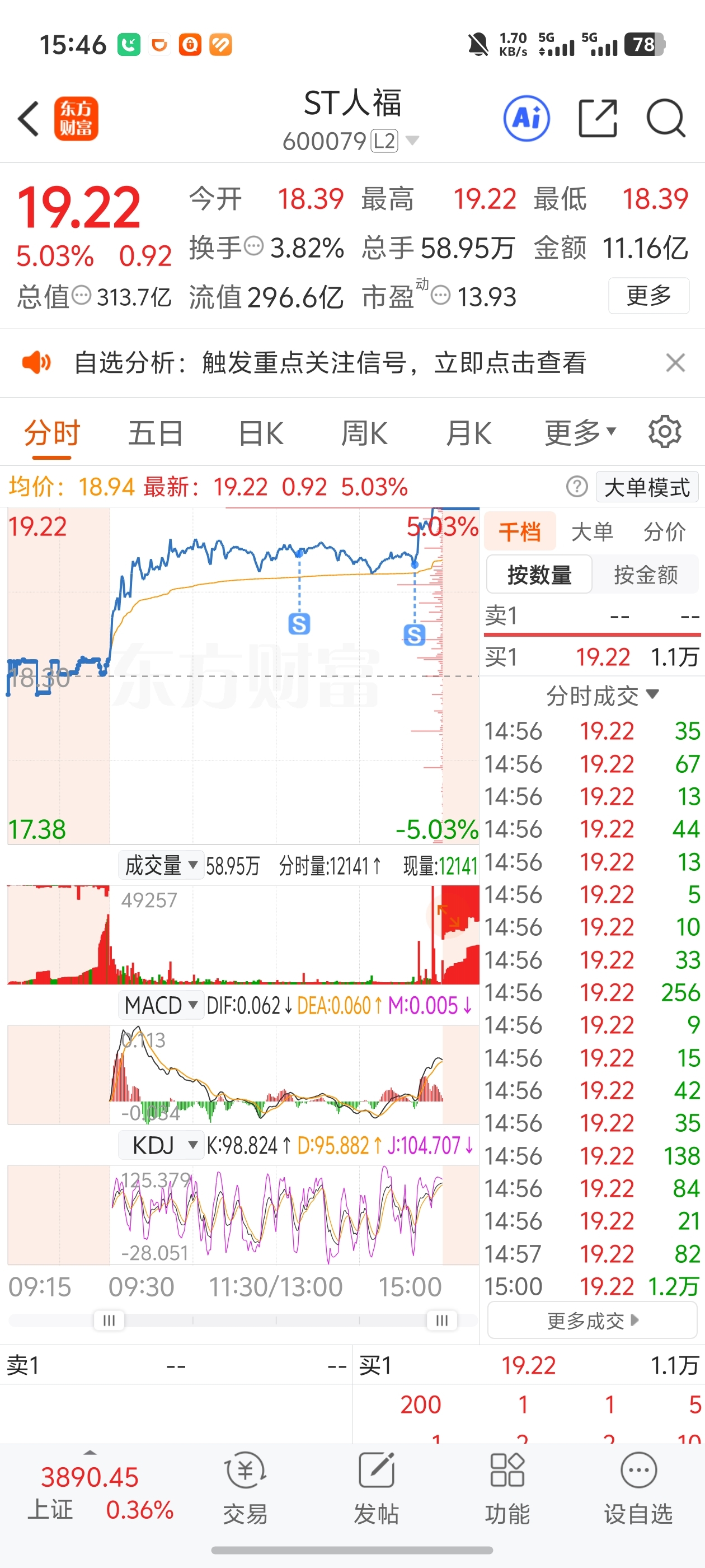 $ST人福(SH600079)$ 说出来没人信,多头被洗出去了,哈哈哈哈哈