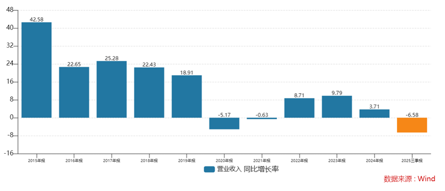 而财务数据的背后反映了公司核心业务面临的增长瓶颈。2025年1月到9月,人福医药实现营业收入178.83亿元,同比下降6.58%。其中第三季度单季营收58.19亿元,同比下降7.36%,下滑趋势未得到遏制。这一现象在医药行业整体保持稳健增长的背景下尤为突出,反映出公司面临的结构性困境。
