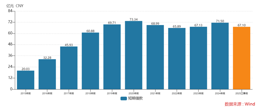 除了管理混乱之外,人福医药的财务状况也值得关注。截至2025年第三季度末,公司合并资产负债表显示,短期借款高达67.10亿元,而同期货币资金仅为约36.52亿元,两者之间存在超过30亿元的缺口。这种“短债长用”的财务结构使公司极易受到信贷环境波动的冲击。