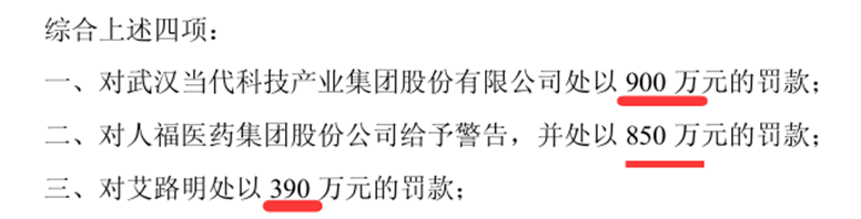 2025年12月12日,公司收到了中国证监会湖北监管局的《行政处罚事先告知书》。本次处罚内容直接指向了公司的财务报告和资金管理问题。湖北证监局拟对人福医药给予警告,并处以850万元的罚款。针对原控股股东当代集团,监管部门的处罚更为严厉。当代集团被处以900万元罚款,时任董事长艾路明被处以390万元罚款,并被采取七年市场禁入措施。