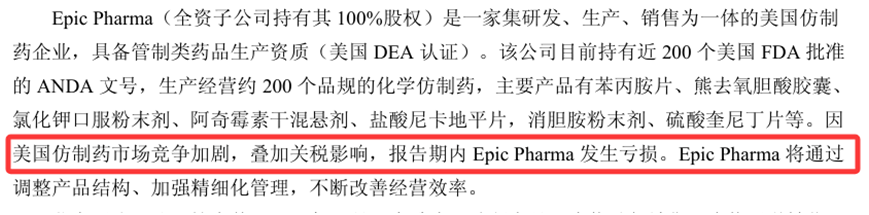 而EpicPharma(美国仿制药业务)受美国仿制药市场竞争白热化、原料药成本上升及中美贸易关税等因素影响,该子公司持续亏损,成为公司的业绩“拖累”。2025年中报显示,国际业务营收下滑明显,且毛利率受压。至于其他国内子公司,武汉人福、北京医疗等子公司部分产品受集采未中标或降价影响,销售收入出现不同程度下滑。