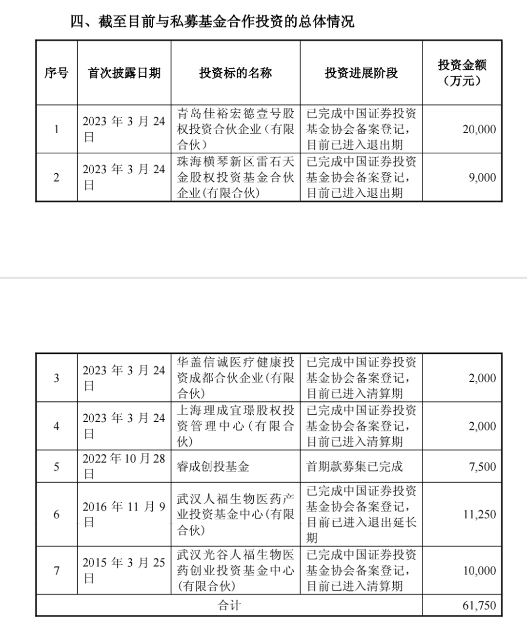 从人福医药前几个私募基金投资时间点看在第一波反弹平台入场,还是比较恰当的!这次选择三年前投资过的睿成基金证明前期合作愉快!