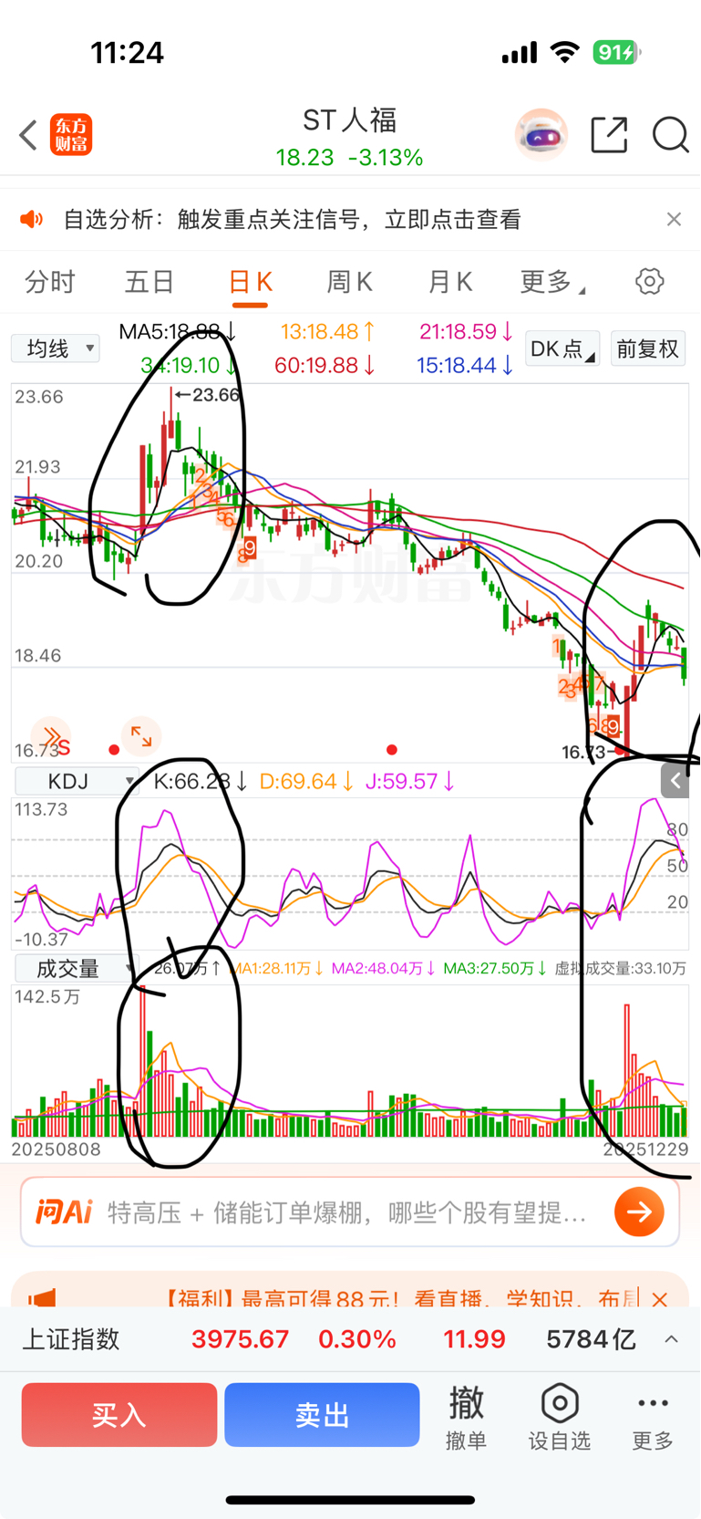 $ST人福(SH600079)$ Kdj死叉,那些说指标没啥用的,说刻舟求剑的,你服不服吧。