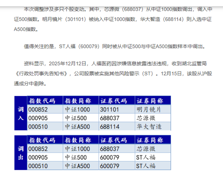 $ST人福(SH600079)$ 要被调出中证500 和A500 难怪最近两天一直跌 6号盘后就出了消息 居然没有看到 要不然昨天开盘卖 少亏几个点啊 明天估计又是大跌3个点起步