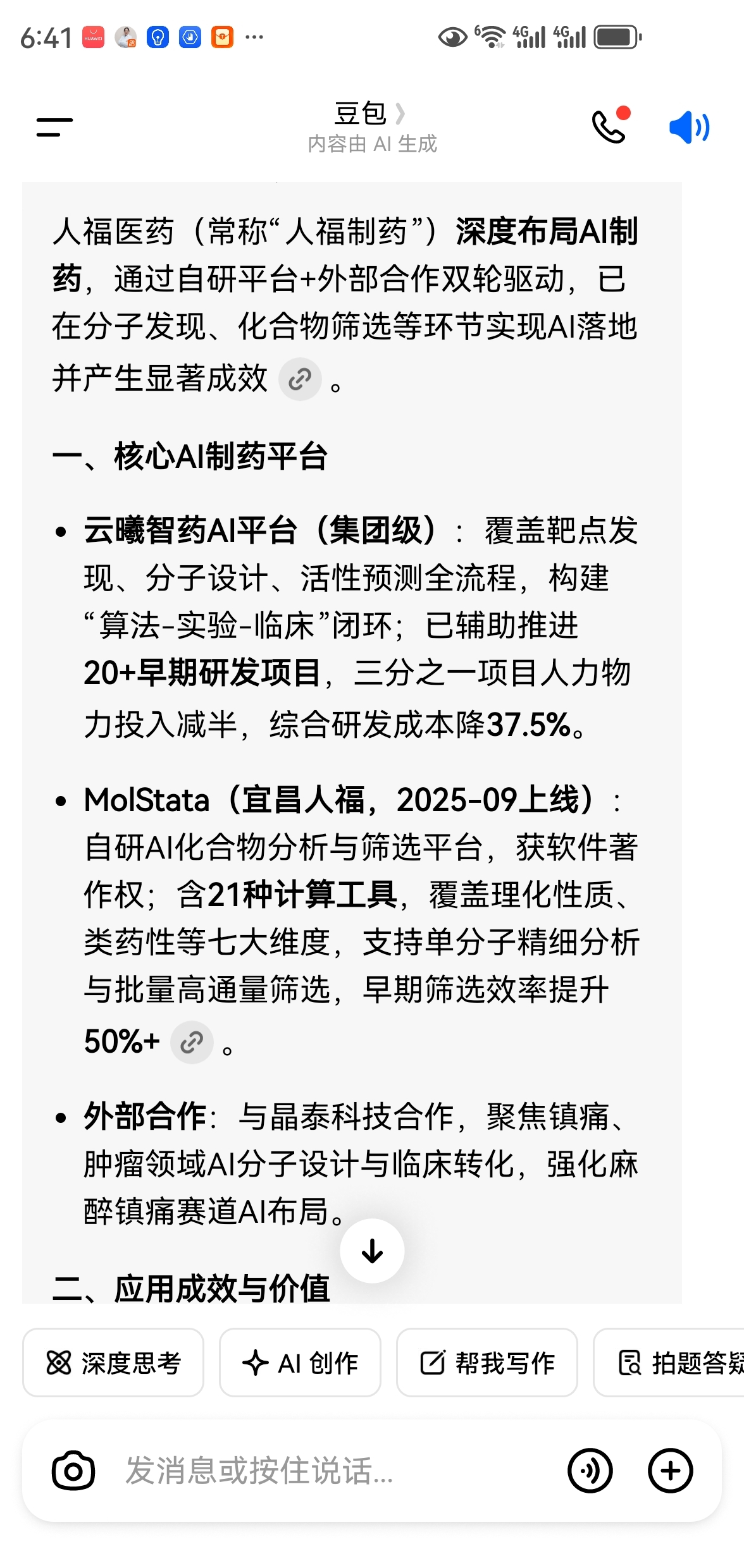 $ST人福(SH600079)$ 人福医药深度布局Al制药,通过自研平台+外部合作双轮驱动,在分子发现和化合物筛选等环节取得显著成效!