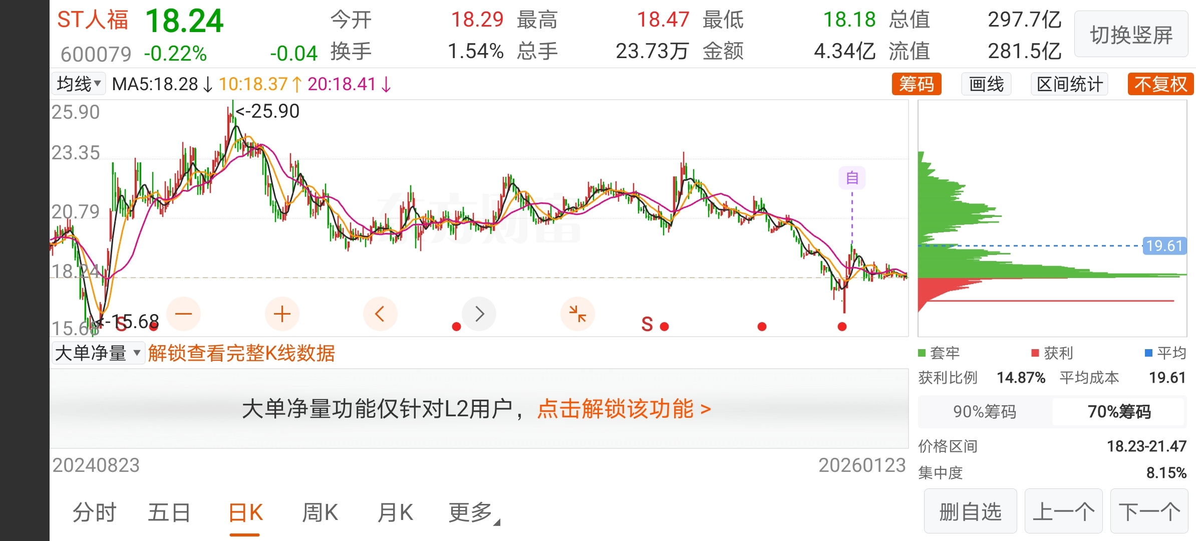 $ST人福(SH600079)$ 为什么大家都觉得它会涨呢?筹码峰这么长的套牢盘,没消化怎么涨?久盘不涨必跌