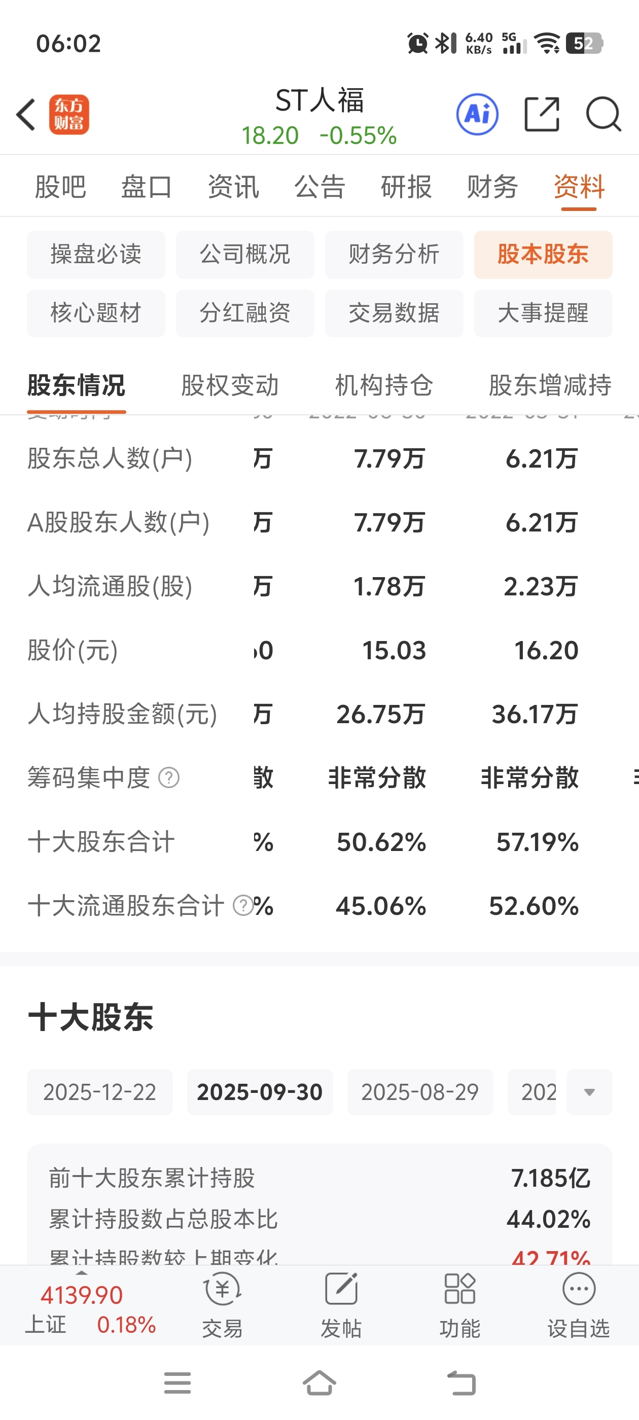 $ST人福(SH600079)$ 7.79万股东对应股价15元!