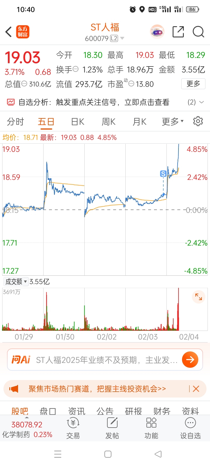 $ST人福(SH600079)$