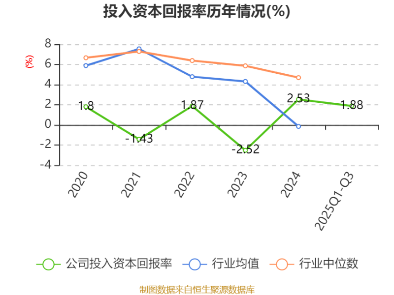 盈利能力方面, 2025年前三季度公司加权平均净资产收益率为2.19%,同比上升0.24个百分点。公司2025年前三季度投入资本回报率为1.88%,较上年同期上升0.1个百分点。