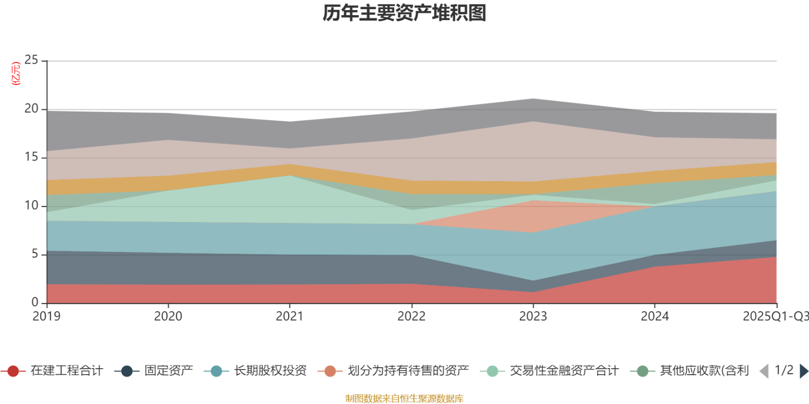 资产重大变化方面,截至2025年三季度末,公司其他应收款(含利息和股利)较上年末减少74.29%,占公司总资产比重下降8.06个百分点;货币资金较上年末减少32.27%,占公司总资产比重下降5.6个百分点;在建工程合计较上年末增加26.91%,占公司总资产比重上升5.29个百分点;交易性金融资产合计较上年末增加346.25%,占公司总资产比重上升4.44个百分点。