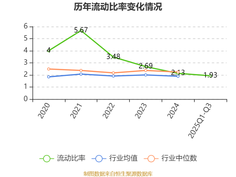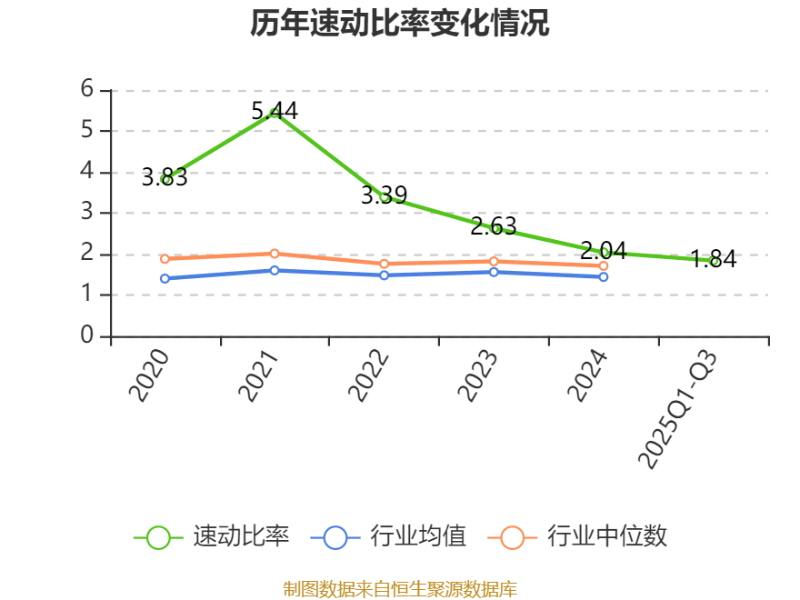 2025年前三季度,公司流动比率为1.93,速动比率为1.84。