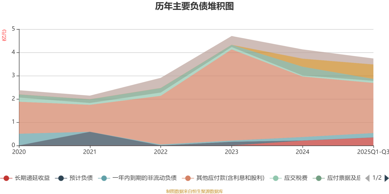 负债重大变化方面,截至2025年三季度末,公司其他应付款(含利息和股利)较上年末减少17.16%,占公司总资产比重下降2.18个百分点;应付票据及应付账款较上年末减少78.82%,占公司总资产比重下降1.5个百分点;短期借款较上年末增加80.29%,占公司总资产比重上升1.43个百分点;长期递延收益较上年末增加65.95%,占公司总资产比重上升0.71个百分点。