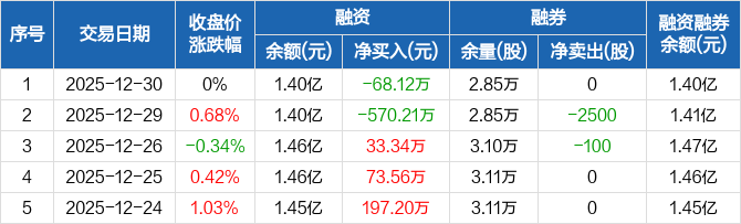 东风科技:融资净偿还68.12万元,融资余额1.4亿元(12-30)