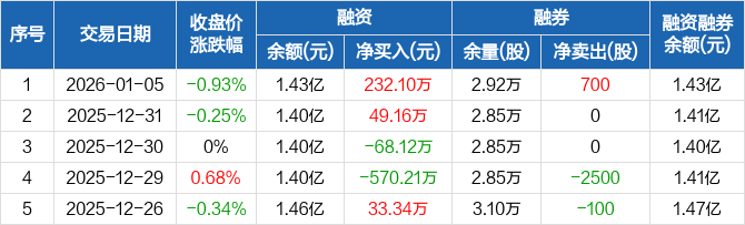 东风科技:融资净买入232.1万元,融资余额1.43亿元(01-05)