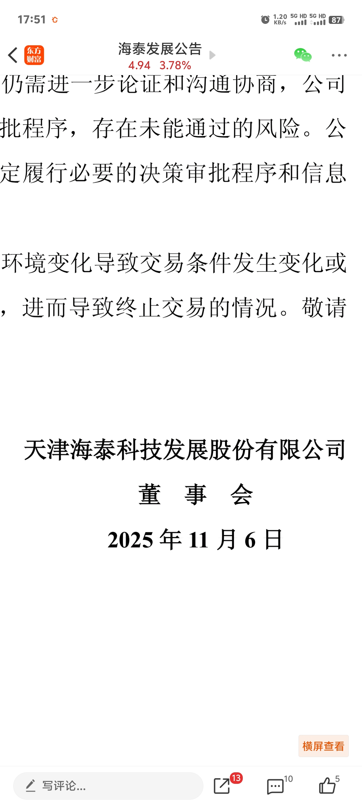 $海泰发展(SH600082)$ 明天的公告,今天这么早发出来算不算是泄露消息
