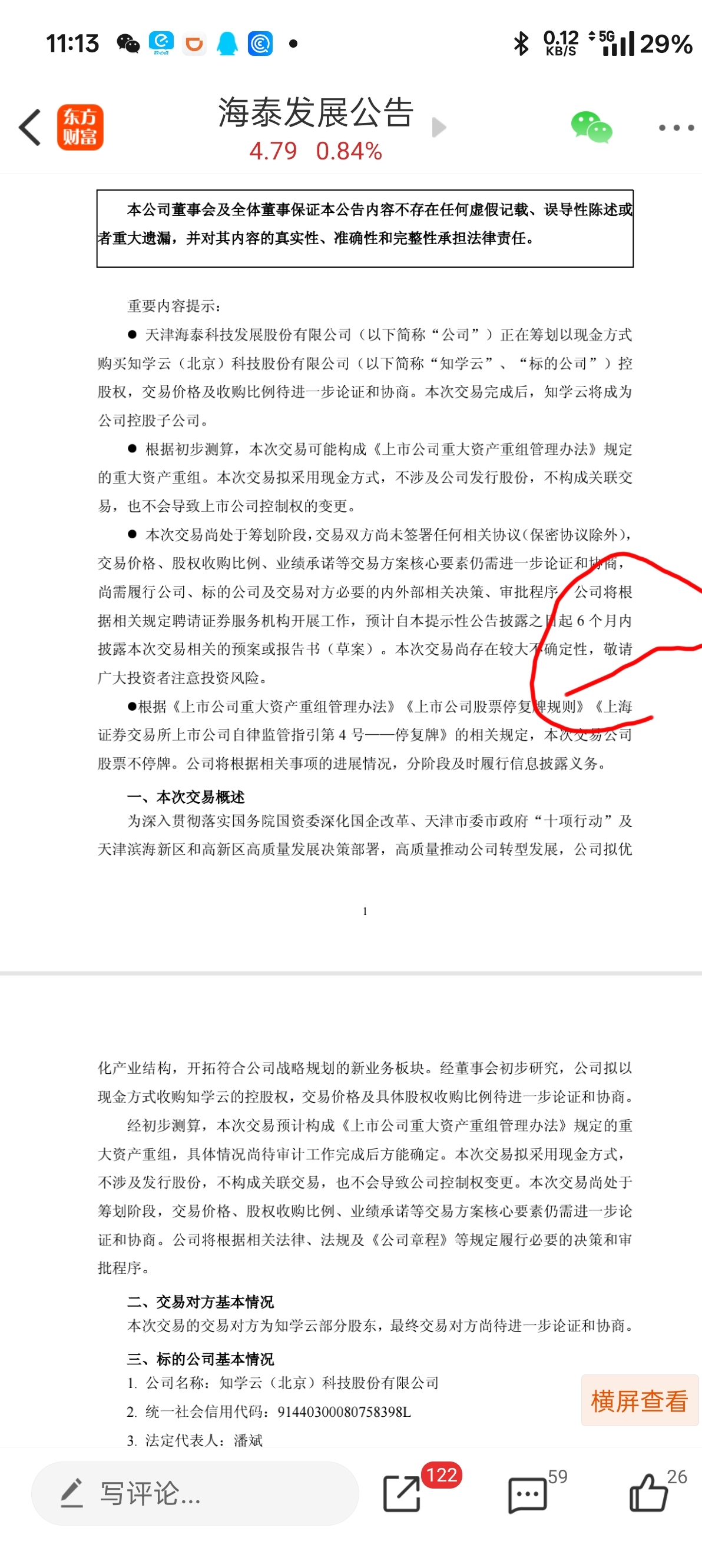 $海泰发展(SH600082)$ 根据 6月5号晚上的公告,6个月内必须出公告!也就是最晚12月5号出公告。上车时间不多了这几天随时出公告