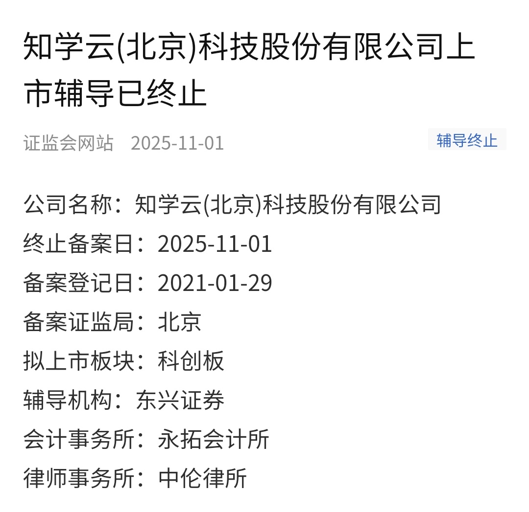 其实知学云在11月1日就已经终止上市辅导并撤回了辅导备案。它葫芦里卖了什么关子