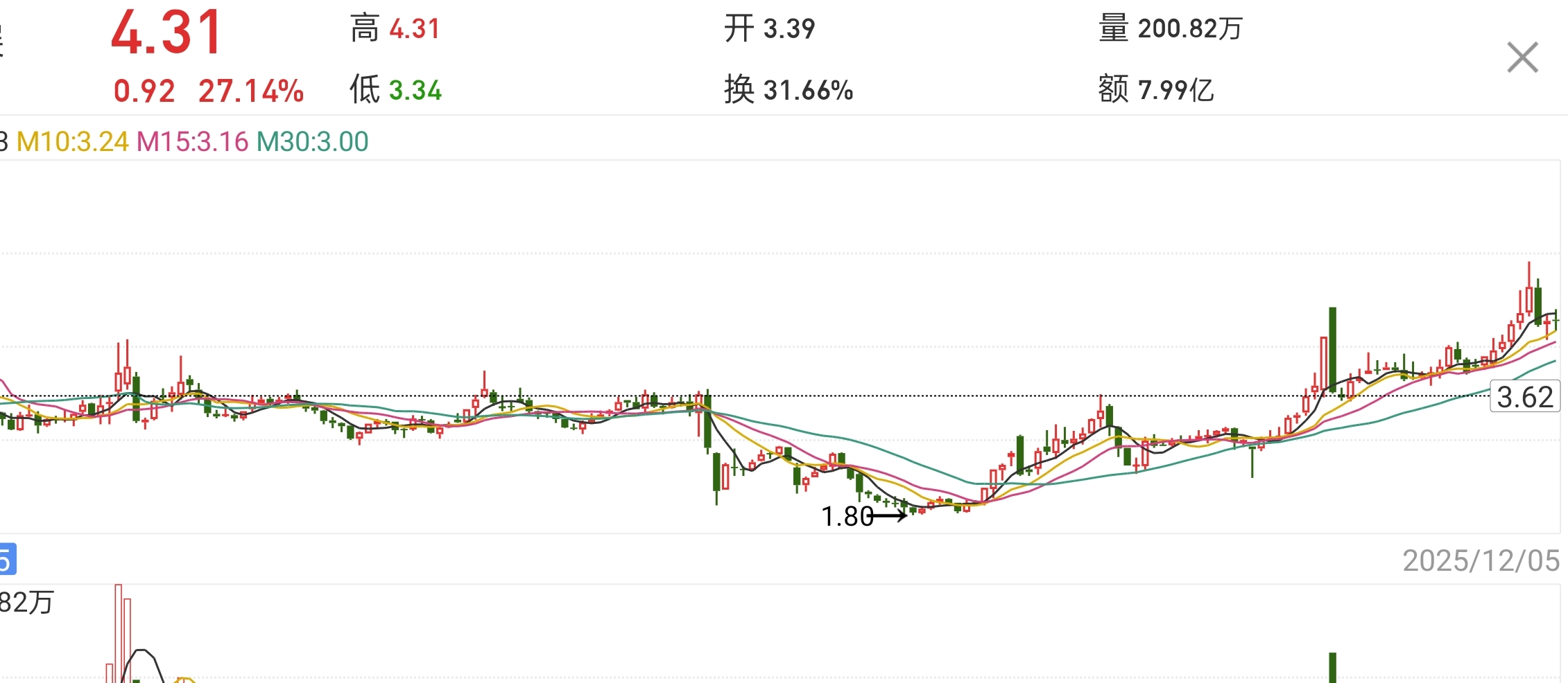 $海泰发展(SH600082)$ 个人看法10月线附近,极限就是图中位置。