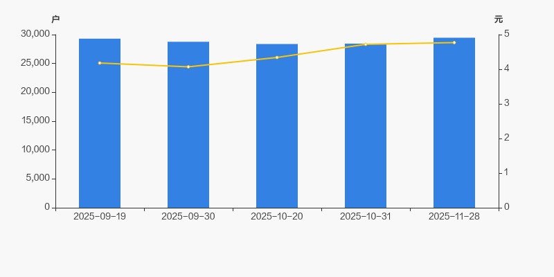 2025年9月19日至今,公司股东户数有所增长,区间涨幅为0.56%。2025年9月19日至2025年11月28日区间股价上涨14.11%。