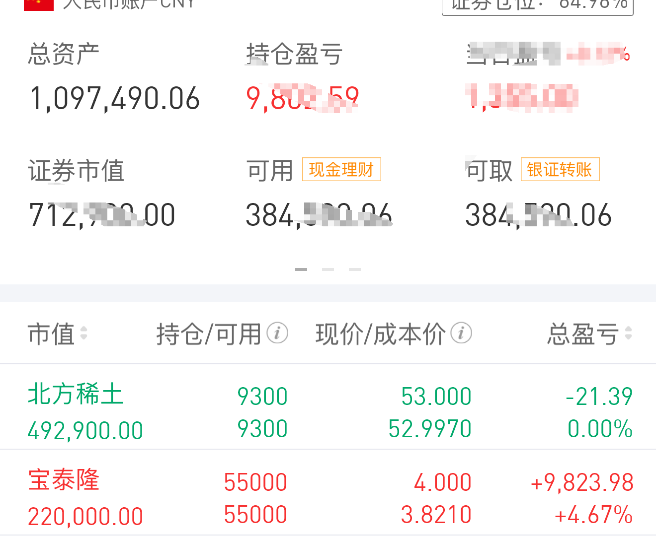 宝泰隆:周五没有碰到板,所以今天有低开的风险,如果能有冲高的机会就要出掉。
