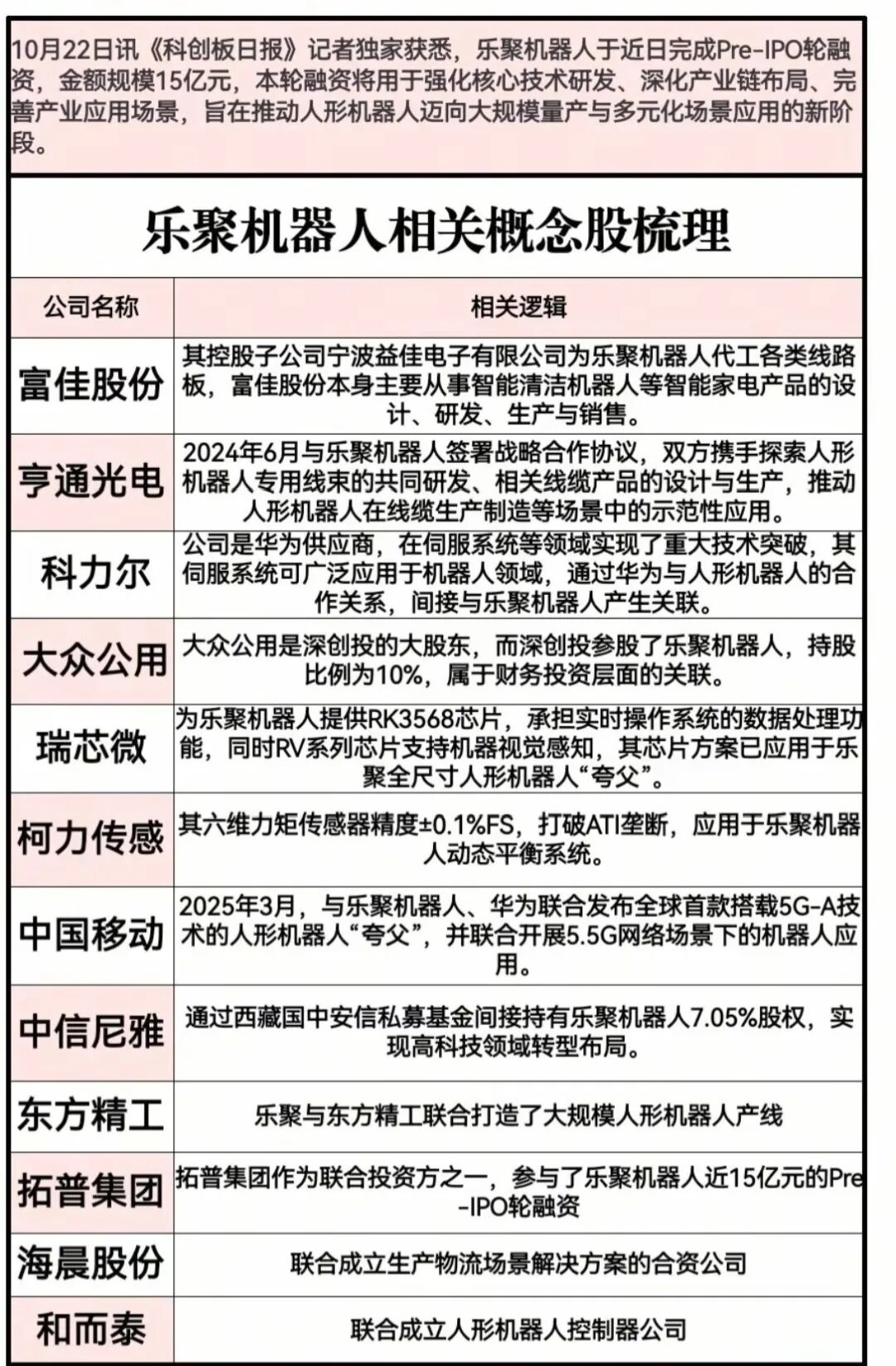 《乐聚机器人相关概念股梳理》2025年10月23日08:11
