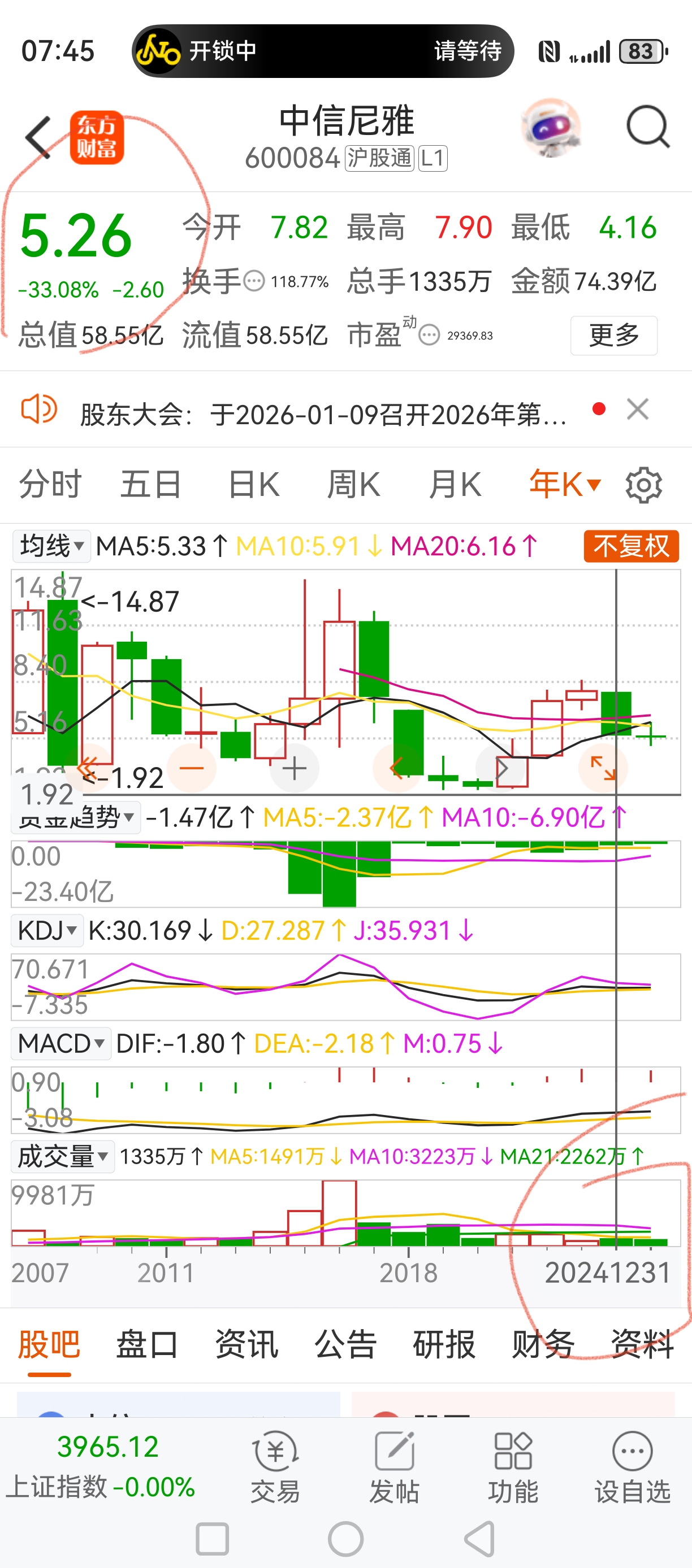 去年12月31日年收盘5.26元年跌幅33.08%.今年年收盘会是多少?到今天年