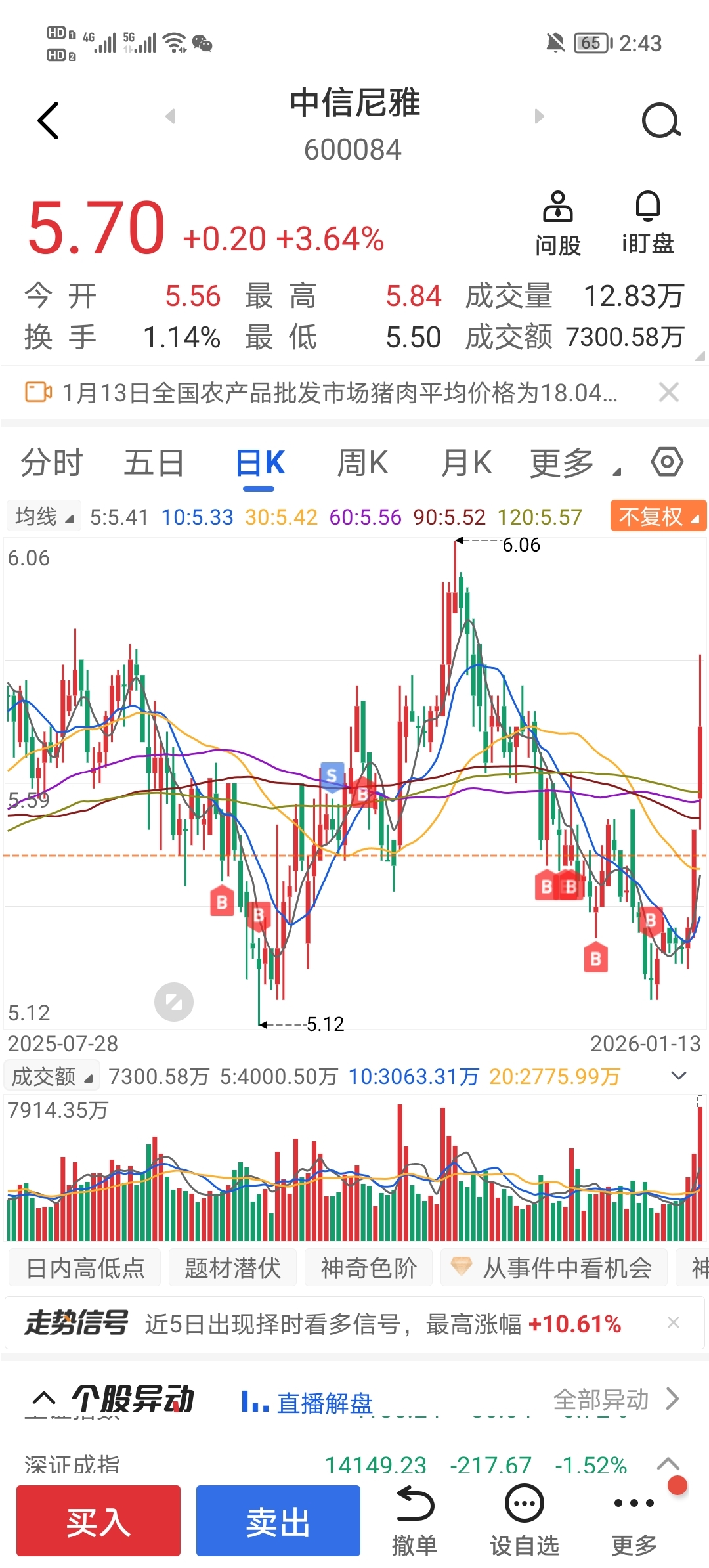 $中信尼雅(SH600084)$ 怎么涨上去了,还没买够呢。老庄后面还有机会买吗?