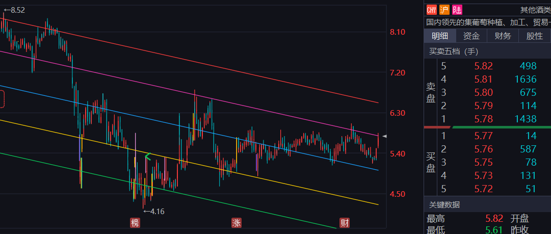 - 短线压力位(6.06元):这是短期投资者较为关注的一个重要价位。股价上探该压力位一般表明短期趋势较强,意味着市场上多方力量占据优势。如果股价能够强势突破6.06元并站稳,这是一个非常积极的信号,意味着上涨空间打开,后续股价可能会有进一步的上升行情,吸引更多的投资者关注和买入。然而,如果股价在多次尝试突破6.06元时都遇阻回落,说明该压力位的压力较大,空方力量在该价位有较强的阻击,股价可能会重新回到调整状态,甚至可能会向下方的支撑位回落寻求支撑。