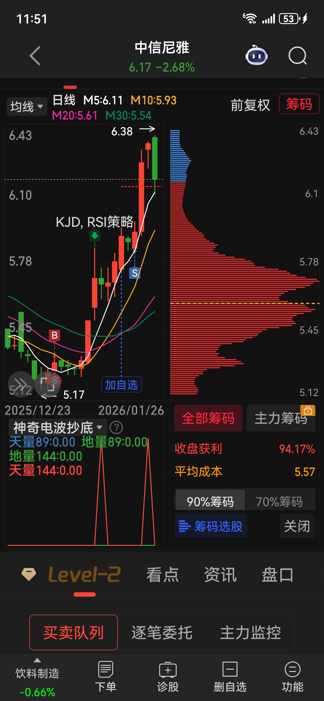 中信尼雅出现底部吸筹形态,吸筹后必然有拉抬和洗盘的过程,其意图是让该进的都进来,