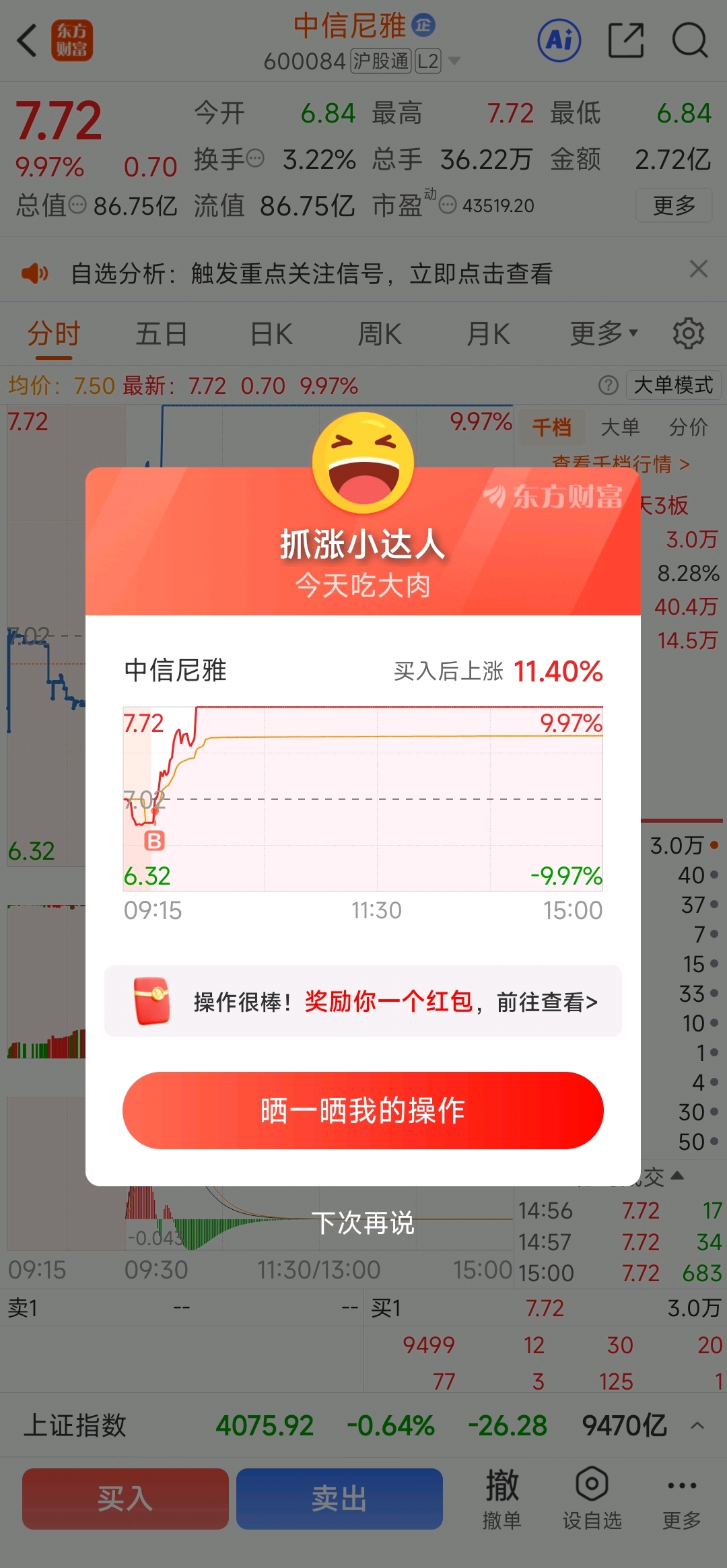 $中信尼雅(SH600084)$ 大盘大跌能吃肉就很知足了