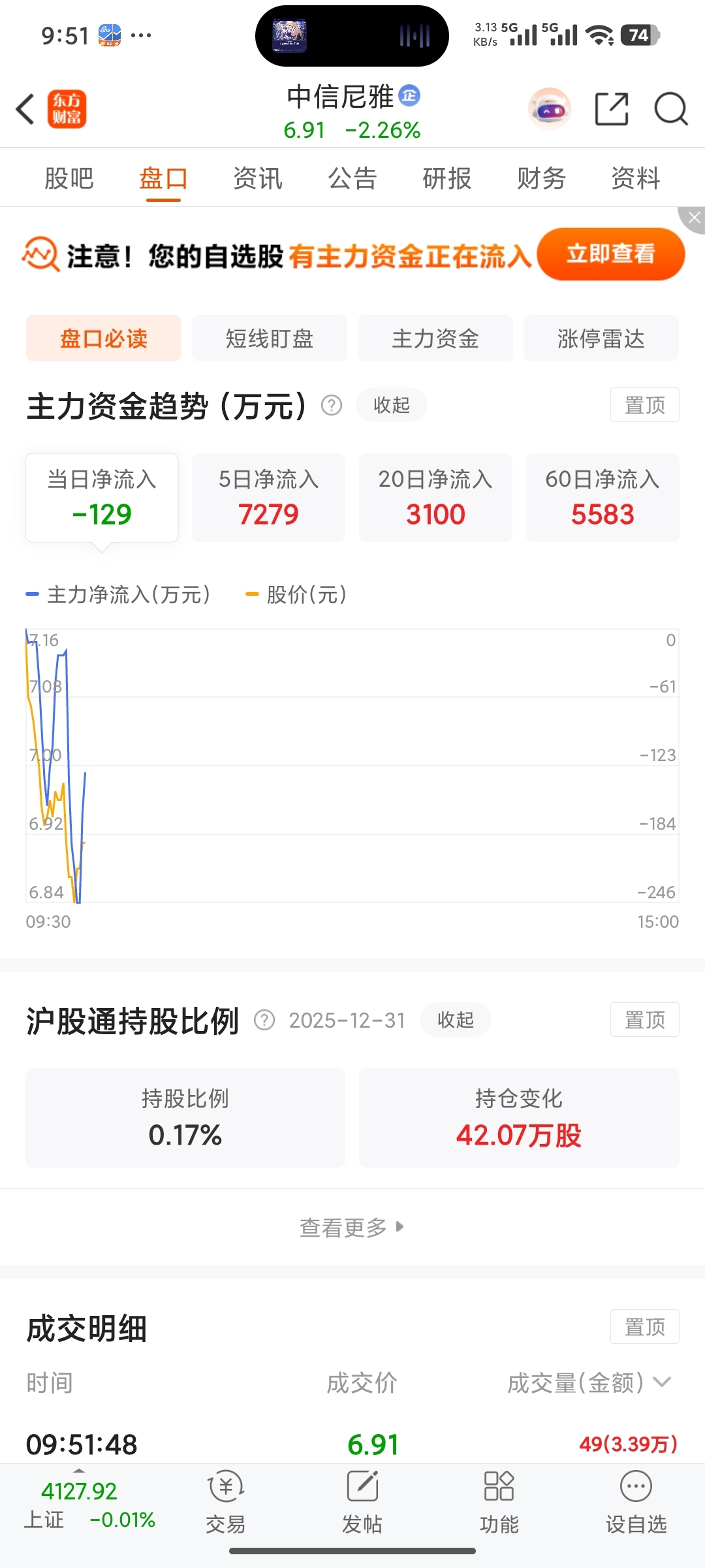 $中信尼雅(SH600084)$ 几天主力进了7000万,拿住就行不要被搞下车了