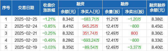 同仁堂:融资净偿还683.71万元,融资余额8.34亿元(02-25)