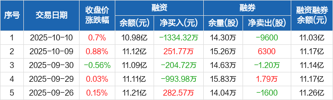同仁堂:融资净偿还1334.32万元,融资余额10.98亿元(10-10)