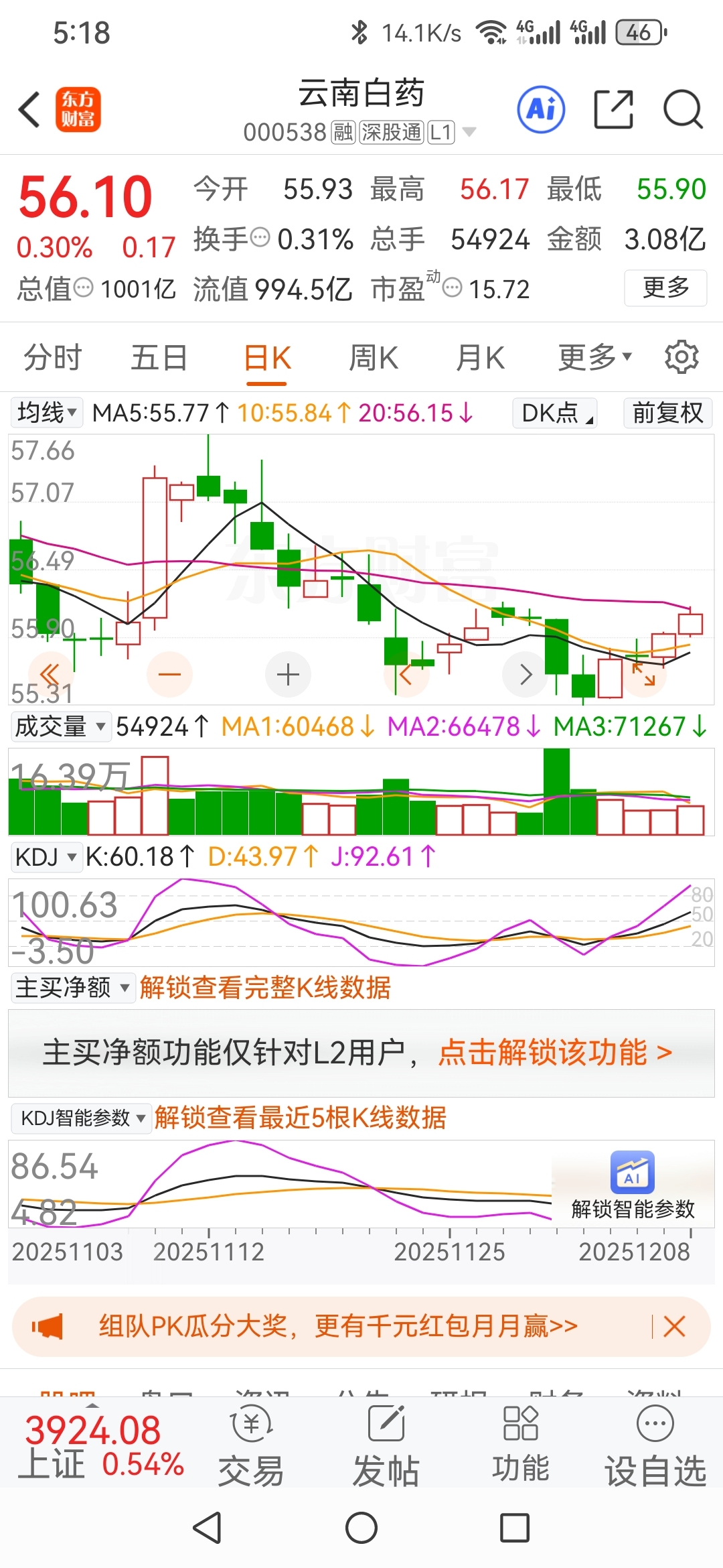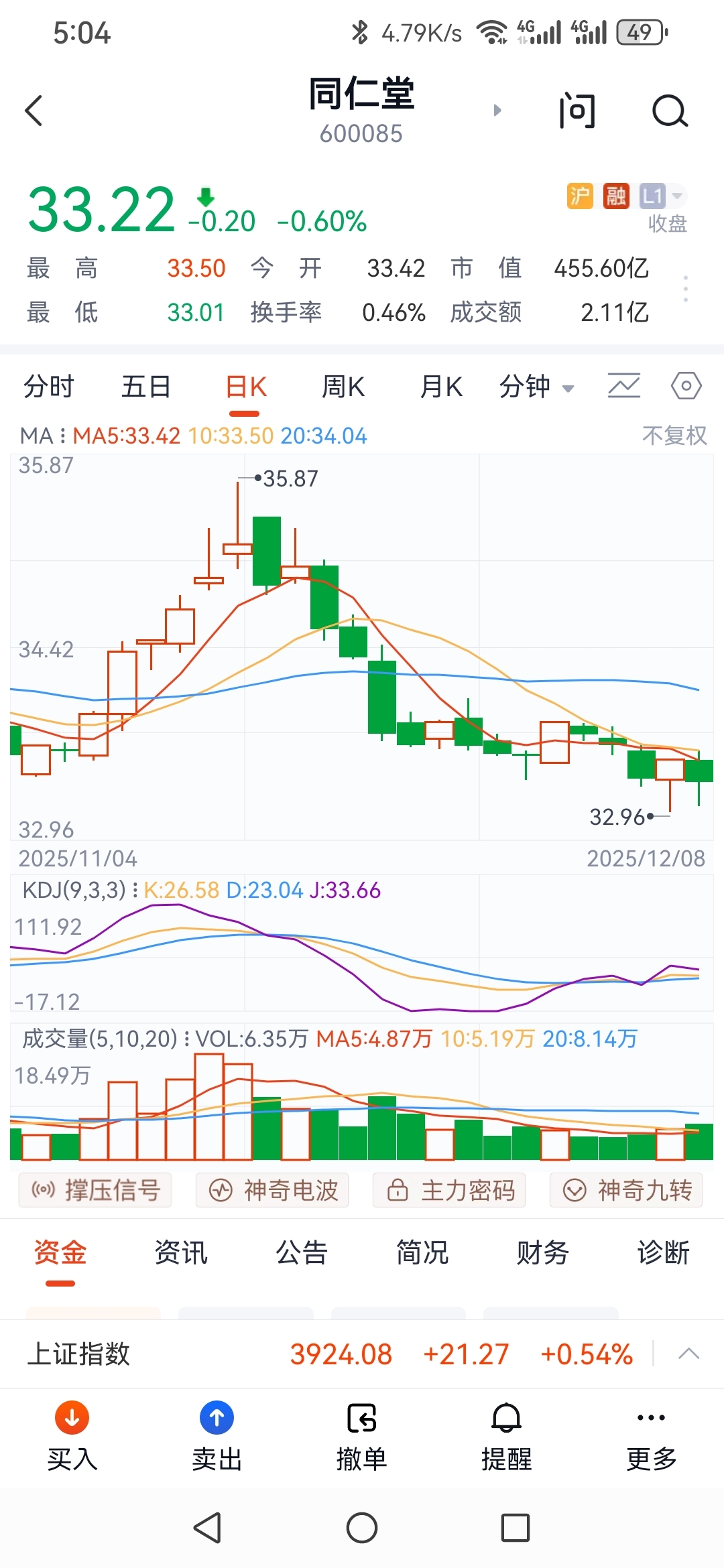双针探底,KDJ向上交叉后走平,明日如收红KDJ继续向上,参照云南白药KDJ,以