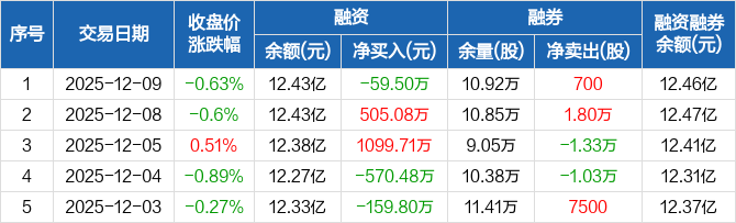 同仁堂:融资净偿还59.5万元,融资余额12.43亿元(12-09)