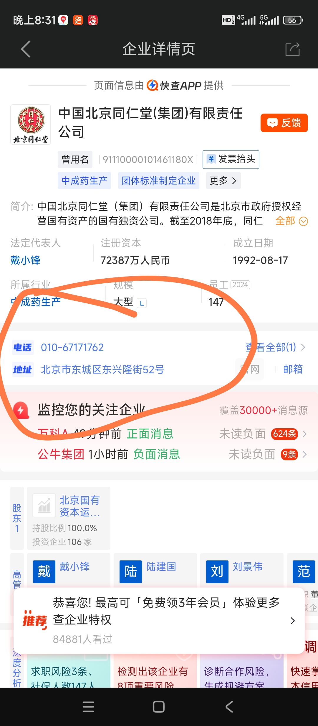 $同仁堂(SH600085)$ 这是北京同仁堂集团的电话地址,大家打过去骂!!