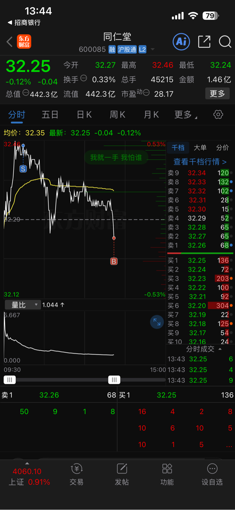 $同仁堂(SH600085)$ 这不争气的东西只能做T