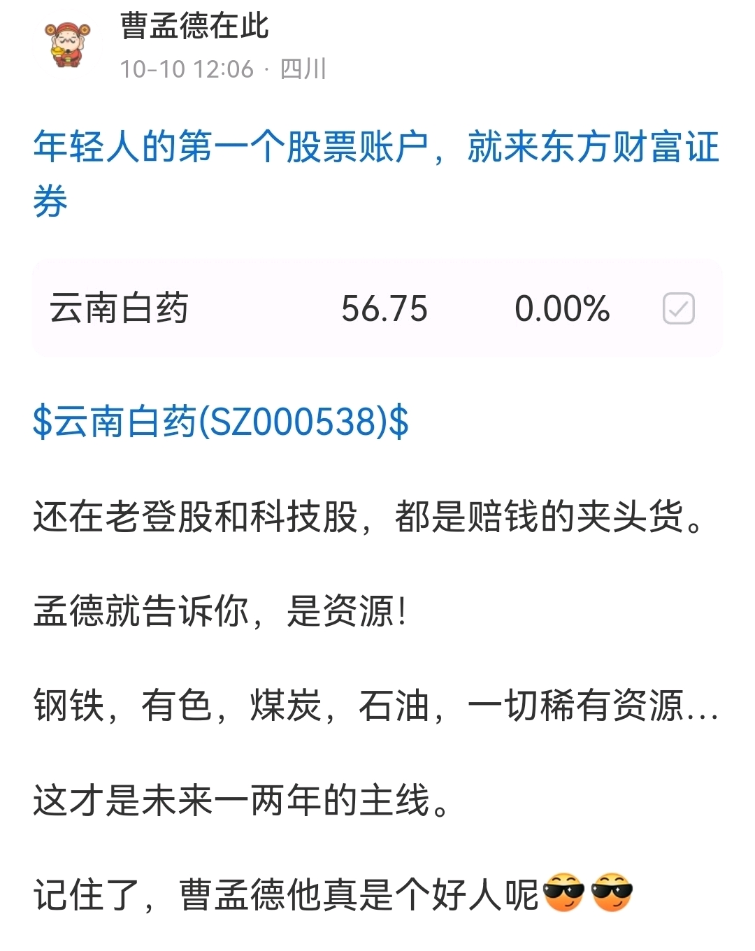 郑重声明:用户在财富号/股吧/博客等社区发表的所有信息(包括但不限于文字、视频、音频、数据及图表)仅代表个人观点,与本网站立场无关,不对您构成任何投资建议,据此操作风险自担。请勿相信代客理财、免费荐股和炒股培训等宣传内容,远离非法证券活动。请勿添加发言用户的手机号码、公众号、微博、微信及QQ等信息,谨防上当受骗!